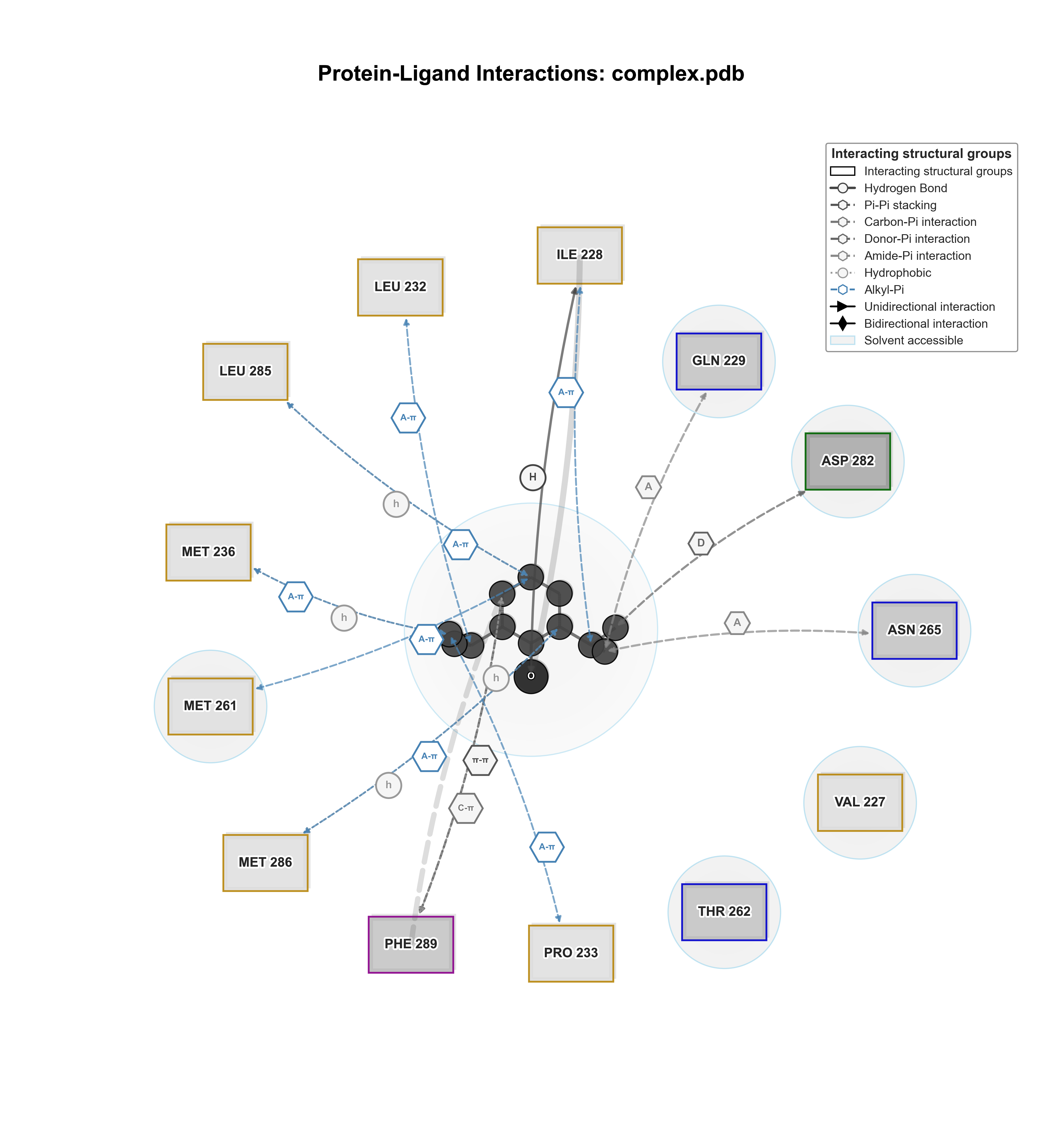 PandaMap-Color 是一款先进的可视化工具,旨在提供高度可定制和可解释的蛋白质-配体相互作用图谱。该工具在其核心的相互作用绘图功能基础上,提供具有动态配色方案的高级图形表示,以显著增进对复杂分子结合事件的理解。该工具对于解析小分子与其蛋白质靶点之间复杂的相互作用至关重要,这对多个科学学科都具有重要意义。